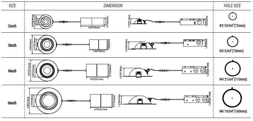| Product Dimensions | 2 inch / 3 inch / 4 inch / 6 inch diameters |